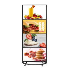 Bring mobility and style to your promotions with this rolling poster display stand. Designed for maximum visibility and convenience, this stand is ideal for restaurants, cafés, retail stores, and trade shows that need flexible signage solutions.
