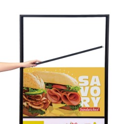 - Quick Poster Changes: Front-loading snap frame design allows posters to be swapped in and out in seconds.